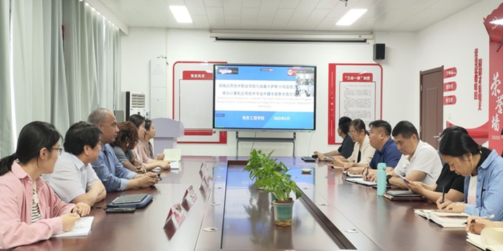 为深化中外合作办学内涵建设,526日下午,买球官方网站在郑州校区办公楼A514隆重举行“计算机应用技术(中外合作办学)专业外籍专家教学周专题研讨会”。会议聚焦教育教学创新与国际合作实践,特邀中加国际合作项目管理专员Bruce Yu、加方外教团队Mrs.Ada AjunwaMr.Hazem Youssef等外方代表出席。买球官方网站党政领导班子成员、专业教师团队共同参与研讨,会议由副院长夏丽珍主持。