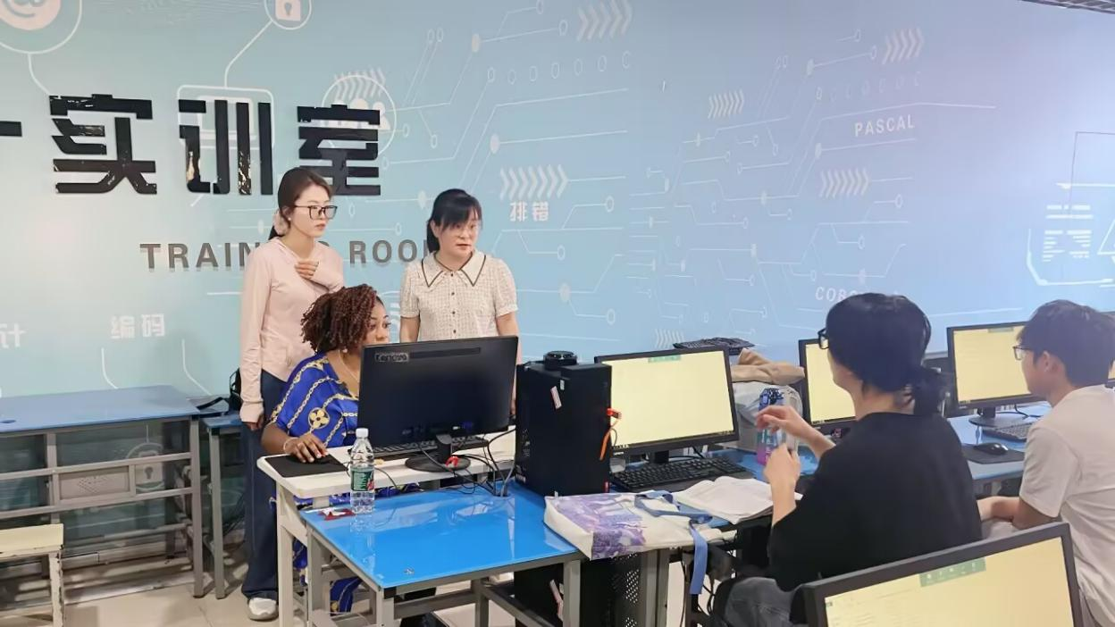 Mrs. Ajunwa 老师结合加拿大高校的课程设计理念,通过分组任务的形式引导学生用讨论课程问题。她不时走到学生中间,耐心倾听思路并给予针对性指导,当发现学生在专业术语理解上存在困难时,立即通过类比生活案例进行深入浅出的解释。语言助教李改玲老师与中方教师王凯华则在旁适时补充专业词汇的中英文对照,确保教学信息传递精准到位。