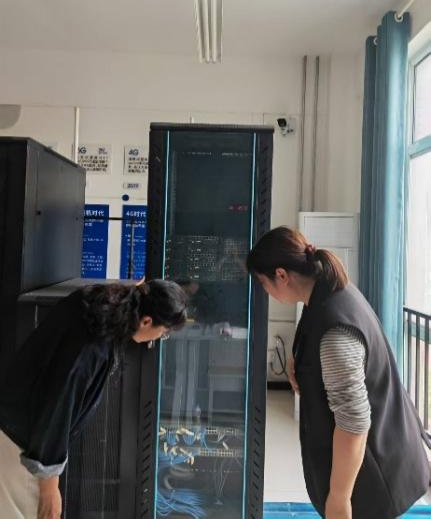 副院长齐峰和夏丽珍分别带领郑州校区、开封校区全体实训室管理员,全面排查了学院的各个实训室,全方位排查隐患,紧盯高风险环节,重点针对消防设施有效性、用电规范、设备环境等高风险环节展开专项排查,全面提升机房安全防护能力。在此次行动中重点检查了灭火器压力、有效期及摆放位置,确保紧急情况下快速响应;排查了强、弱电线路铺设规范,设备防护装置,严查私拉乱接、线路老化等隐患;对服务器、交换机等核心设备深度除尘,清理机房杂物,规范线缆标识与固定,改善散热条件,降低设备过热风险,本次检查,发现部分实训室安全标志脱落,已及时进行张贴,个别接线盒未固定上墙,已及时进行报修。