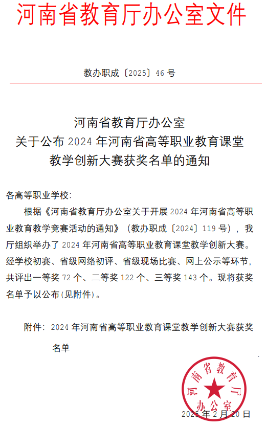 近日,2024年河南省高等职业教育课堂教学创新大赛圆满落幕。经过激烈角逐,我校买球官方网站郅忠强老师凭借其创新的教学设计和出色的课堂表现,荣获大赛一等奖。