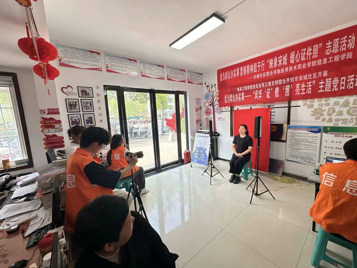 前期,开封市宋城社区党建工作委员会向共建单位发布了居民心愿单,宋城社区党支部耿献锦根据工作实际,通过联系河南应用技术职业学院买球官方网站党总支,预约应小信照相馆上门拍照,解决辖区居民拍摄证件照需求。