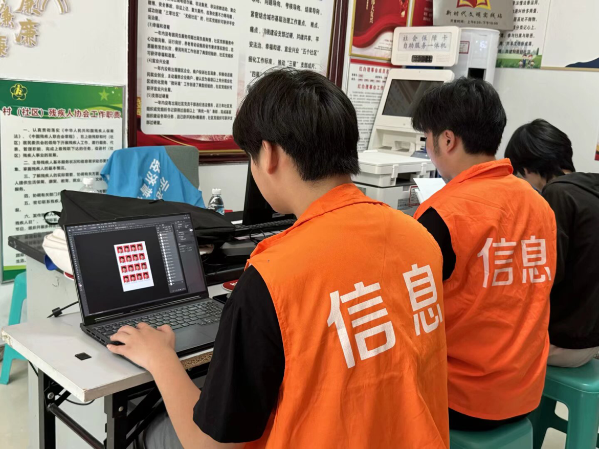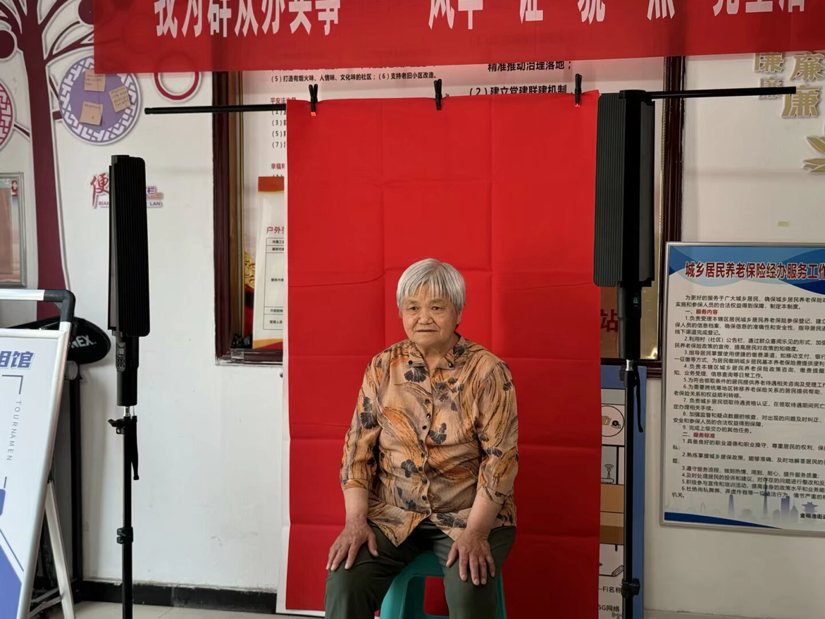 在摄影师的引导下,居民们精神矍铄,笑容满面,一个个幸福的瞬间被镜头定格。拍摄后,党员们还利用专业的图像处理软件,对照片进行精心修图、裁剪、排版,确保每一张照片都清晰、美观、符合证件照标准,同时现场出纸质相片。