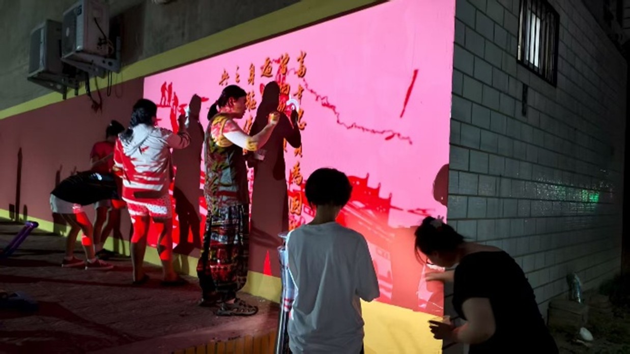 次日起,即7月13日至8月13日,我投入到文峰区三官庙的墙绘工作中。三十天里,我和伙伴们手握画笔,将文明新风、传统文化等元素融入画面,让原本单调的墙面变成传递正能量的“文化长廊”,用色彩为社区增添了鲜活活力。