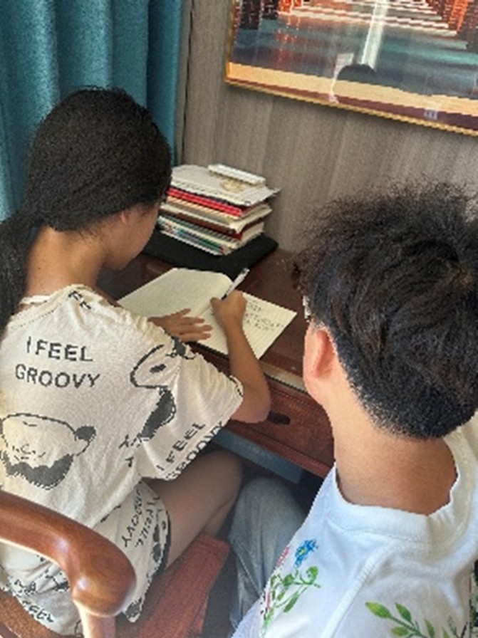 初接这项任务时,面对活泼好动的小朋友,我一度有些手足无措。为快速拉近距离,我决定从他们的暑假作业入手——翻开练习册,拼音认读、数学计算、趣味手工等五花八门的问题接连出现。我耐下心来,针对每个知识点反复讲解,直到小朋友点头理解。随着辅导的深入,我逐渐褪去紧张,和小朋友们的相处也越来越融洽,从最初的“陌生人”变成了他们愿意分享小秘密的“伙伴”。