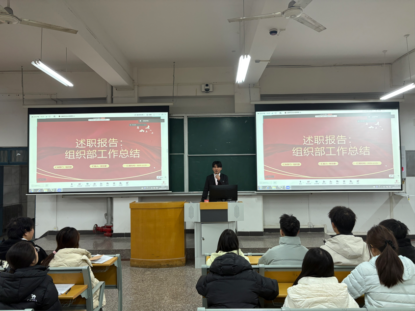 风起扬帆正当时,凝心聚力再出发。立足工作质效精进根本要求,锚定团队向心力凝聚核心举措,为助力学院学生会工作行稳致远,12月23日,买球官方网站2025年学生会述职大会于郑州校区教C102顺利召开。开封校区相关人员于F410以线上形式全程参会。本次会议由杨瑜琼主持,党总支副书记杨帆、全体学生会成员参会。