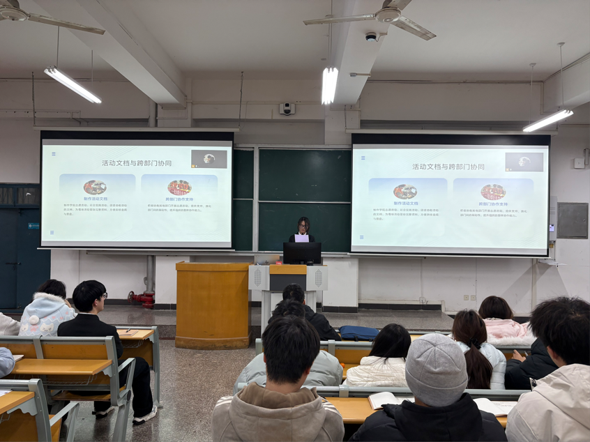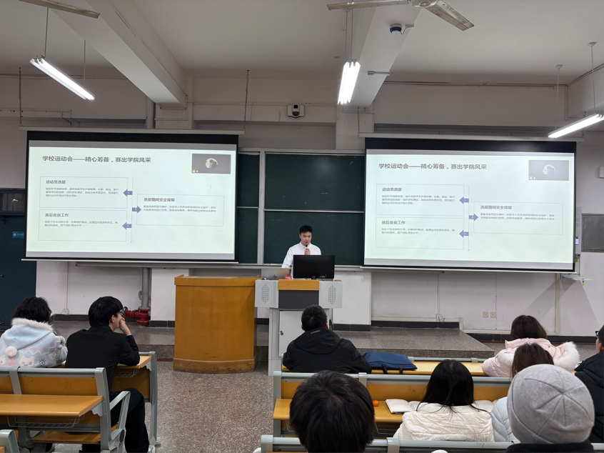 会议的最后,杨帆书记上台致词,他对上述工作汇报给予肯定,并针对汇报中提及的问题短板,提出针对性的改进建议,同时鼓励学生会成员正视不足、主动作为,以精益求精的态度优化工作方法,以凝心聚力的姿态夯实服务基础,让学生会成为学院联系学生的坚实桥梁。